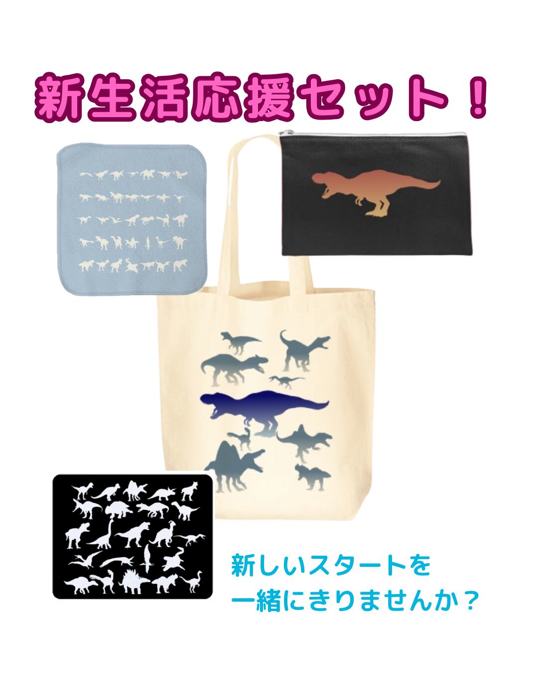 トートバッグ、ハンカチタオル、ポーチ、マウスパッドを
